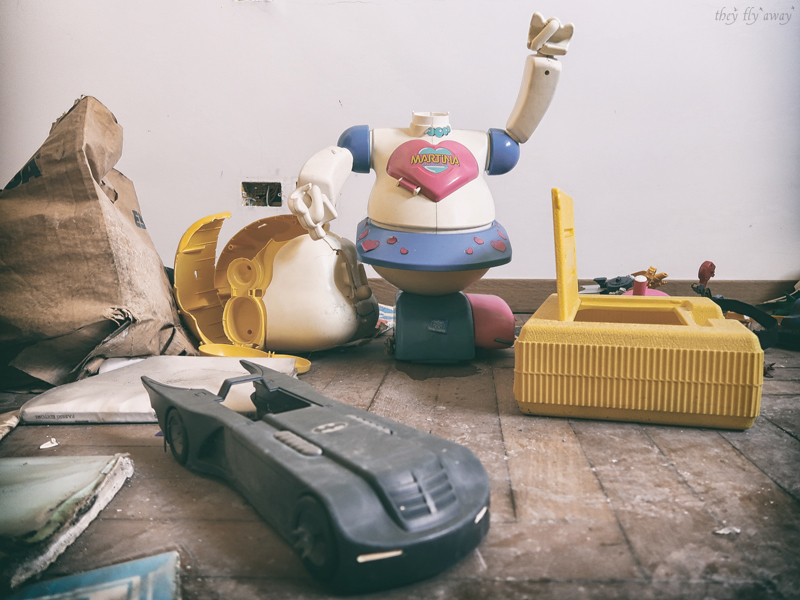 Una stanza ha il pavimento disseminato di giocattoli e ai piani alti ci sono anche una cucina e delle camere da letto; ipotizzo che potesse viverci stabilmente un custode.