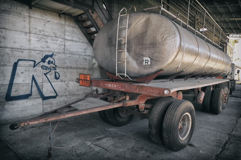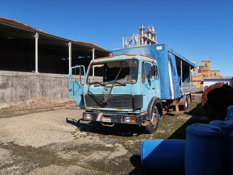 Continua la lista dei mezzi abbandonati (questo è uno dei luoghi con il maggior numero di mezzi da me mai trovati, escludendo i depositi di auto veri e propri) con un camion Mercedes, tre rimorchi autobotte, un’autocisterna IVECO, un vecchio trattore Ford con un lungo braccio meccanico.