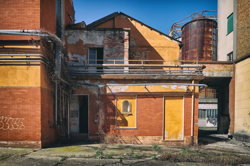 Torno nel piazzale per decidere se tornare a scattare altre foto in qualche reparto quando noto che al di là della strada, da un balcone al primo piano di una villetta due donne mi guardano con insistenza. Decido quindi che è meglio andarmene, dato che comunque sono quasi quattro ore che sono dentro e forse è più che sufficiente così. Mi incammino a ritroso verso il retro della fabbrica sparendo dalla vista delle signore per tornare nel mondo “normale”.