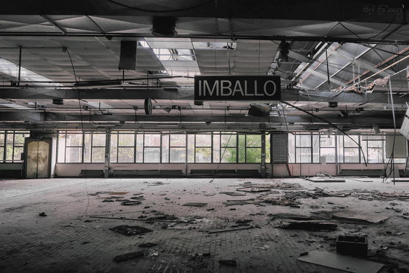 Torniamo al livello più basso esplorando capannoni del reparto “assicurazione qualità” e “imballo”. Purtroppo si tratta ancora di grandi spazi vuoti.