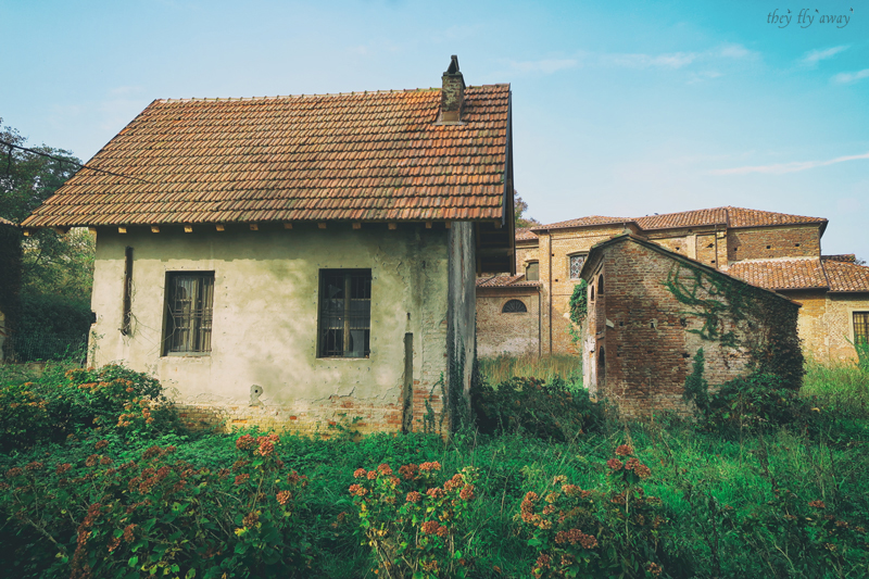 In una minuscola frazione tra le campagne, rimane questa piccolissima scuola elementare, ormai usata come deposito per il mangime dei conigli.